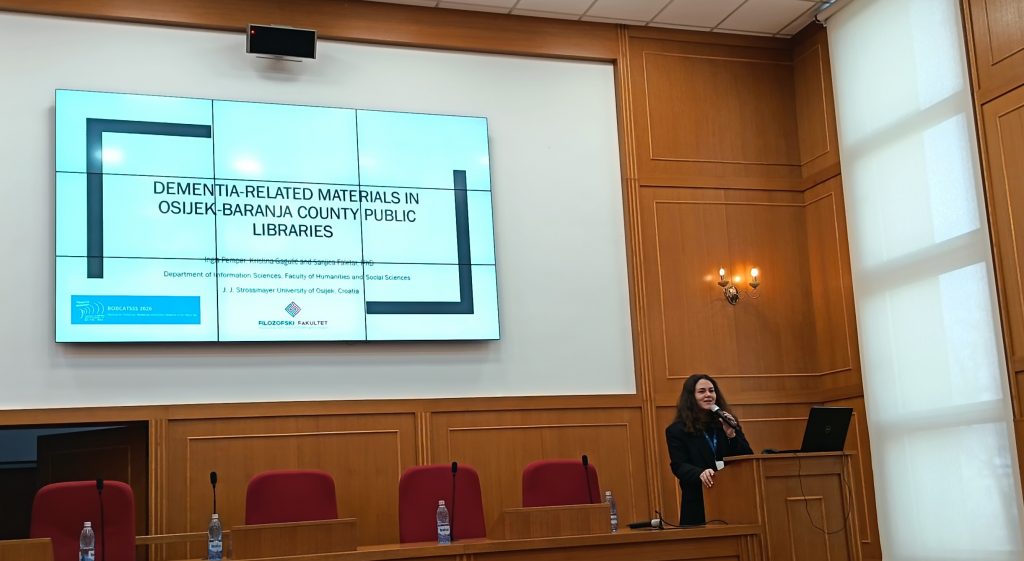 Dana 14. studenog 2025. prof. dr. sc. Sanjica Faletar održala je pozvano izlaganje pod naslovom „Knjižnične usluge za osobe s demencijom i njihove obitelji“ na stručnom skupu s međunarodnim sudjelovanjem „Aktivno starenje: knjižnične usluge za poboljšanje kvalitete života starijih osoba. Skup, koji se održao u Gradskoj knjižnici i čitaonici Pula, okupio je 50ak sudionika iz brojnih ustanova koje se na različite načine skrbe o starijim osobama i njihovom percepcijom i položajem u društvu (knjižnice, škole, domovi za umirovljenike itd.), te predavače i iz Hrvatske, Slovenije, Italije i Kanade. Na skupu je predstavljeno i drugo izdanje „Vodiča za osobe s Alzheimerovom bolesti i njihove članove obitelji“ koji je nastao u okviru UNIOS ZUP znanstvenog projekta “Informacijske potrebe oboljelih od Alzheimerove bolesti i članova njihovih obitelji” te je revidiran i nadopunjen u okviru institucionalnog FFOS-002 projekta „Izgradnja demenciji prijateljskih narodnih knjižnica: teorijske i praktične pretpostavke”.