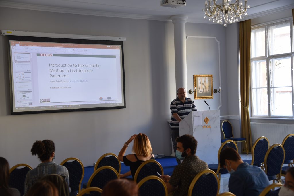 Europska ljetna škola informacijskih znanosti (DESS 2021) održana je od 6. do 10. rujna 2021. na Filozofskom fakultetu u Osijeku kao dio Erasmus + projekta DECriS (Digital Education for Crisis Situations: Times When There is no Alternative) čija je autorica i suvoditeljica umirovljena prof. dr. sc. Tatjana Aparac-Jelušić. DESS 2021 organizirao je Odsjek za informacijske znanosti Filozofskog fakulteta u suorganizaciji sa Sveučilištem iz Hildesheima (Njemačka), Sveučilištem u Barceloni (Španjolska), Sveučilištem za knjižničarstvo i informacijske tehnologije iz Sofije (Bugarska) i Sveučilišnim računskim centrom (SRCE) u Zagrebu. Ljetna škola bila je ponajviše usmjerena na problematiku dizajniranja, oblikovanja i implementacije otvorenih obrazovnih sadržaja (OER) na visokoškolskim ustanovama iz područja knjižnične i informacijske znanosti tijekom COVID-19 pandemije, a na njoj je sudjelovalo dvadeset i dvoje studenata iz Španjolske, Njemačke, Bugarske, Bosne i Hercegovine te Hrvatske. Predavanja je održalo pet pozvanih inozemnih predavača: dr. sc. Juanjo Boté sa Sveučilišta u Barceloni, prof. dr. sc. Tania Todorova sa Sveučilišta u Sofiji, prof. dr. sc. Mario Hiberti prof. dr. sc. Emir Vajzović sa Sveučilišta u Sarajevu, prof. dr. sc. Thomas Mandl sa Sveučilišta u Hildesheimu te dva domaća predavača: prof. Irena Jandrić iz SRCE-a u Zagrebu i dr. sc. Marko Vukobratović iz informatičke tvrtke COBE. Osim njih predavanja i/ili radionice održali su nastavnici s Odsjeka za informacijske znanosti: izv. prof. dr. sc. Boris Bosančić, izv. prof. dr. sc. Anita Papić, izv. prof. dr. sc. Boris Badurina, prof. dr. sc. Damir Hasenay, doc. dr. sc. Milijana Mićunović, doc. dr. sc. Kristina Feldvari, doc. dr. sc. Tomislav Jakopec i asistentica Ines Horvat te su u njima obrađivali razvoj i dostignuća u području informacijskih znanosti, istraživačku metodologiju u informacijskim znanostima, principe informacijskog pretraživanja, vrjednovanje informacijskih usluga te zaštitu i čuvanje analognih i digitalnih materijala. Više informacija o programu škole dostupno je na mrežnoj stranici DECriS projekta (https://decris.ffos.hr).