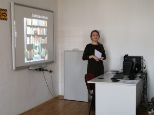 Dana 11. 12. 2017. u okviru kolegija “Teorija i praksa informacijskih djelatnosti” predavanje je održala Mateja Paradžik, studentica 2. godine diplomskog studija Informatologija i Informacijska tehnologija. Kolegica Paradžik predstavila je studentima 1. godine preddiplomskog studija Informatologije svoj završni rad na temu statusa i percepcije knjižničara u društvu.