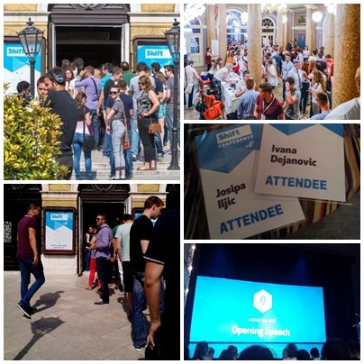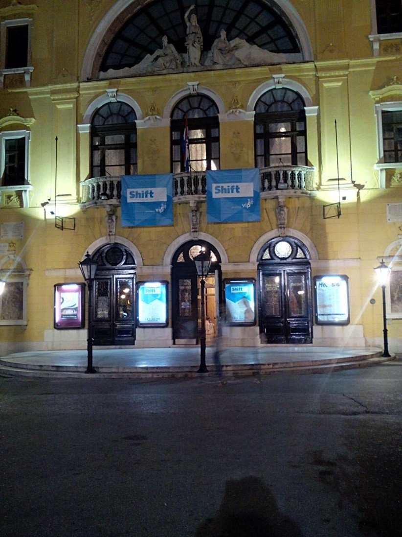 Nakon odmora od puta i upoznavanja s gradom, dolazi vrijeme za ozbiljnost i ispunjavanje zadataka koji se nalaze pred nama. Nakon nekoliko razmijenjenih mailova s upitom za pomoć u organizaciji konferencije s gospođicom Katarinom, koja se bavi odnosima s javnošću, dolazimo (nakon kraće pomutnje s Google mapama) do Muzeja grada Splita, gdje se ona nalazi. Dolaskom vidimo Shift zastavice i plakate čime smo znale da smo na pravom mjestu. Mnoštvo je ljudi užurbano radilo u poslovima koji su im bili zadani te se sve činilo kako bi sutrašnja konferencija bila kvalitetno pripremljena. Upoznajemo se s Katarinom, zahvaljujući ljubaznim ljudima koji su nas do nje uputili i saznajemo da je organizacija pokrivena dovoljnim brojem volontera te da nemamo u čemu sudjelovati, osim uživati u danu i provedenom vremenu u gradu te sutra na predavanjima i ostalim događanjima na konferenciji (što nam je Katarina lijepo rekla, ugodno iznenađena našim upitom za pomoć). Kako smo se taj dan upoznale s gradom, nije nam bio problem pronaći Hrvatsko narodno kazalište u kojem se održavala konferencija. Kazalište je također bilo potpuno u znaku konferencije, ukrašeno zastavama i plakatima Shifta, ali i okruženo organizatorima i volonterima koji su užurbano obavljali posljednje pripreme za sutrašnji događaj.