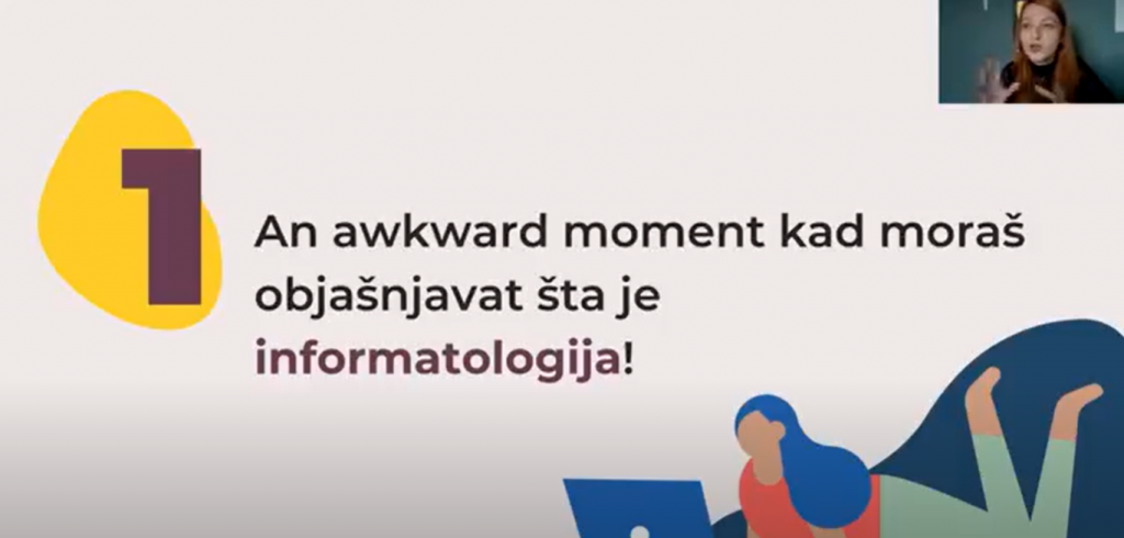 Tijekom svibnja 2021. godine u okviru kolegija Osnove informacijske djelatnosti gostovali su bivši studenti Odsjeka za informacijske znanosti Filozofskog fakulteta Osijek. Putem svojih online izlaganja (putem aplikacije Zoom) upoznali su studente 1. godine preddiplomskog studija informatologije sa svojim karijernim putevima i trenutnim radnim mjestima, u zemlji i inozemstvu. Studentima su dali korisne savjete za uspješno studiranje kako bi stekli vrijedna znanja, vještine i iskustvo neophodno za pronalaženje posla u tradicionalnim i netradicionalnim radnim okruženjima. U ovim iznimno zanimljivim sesijama sudjelovalo je ukupno 16 bivših studenata: Zsolt Vačora (OŠ Korog), Mateja Paradžik (OŠ Sibinjskih žrtava), Blaženka Majdandžić (Knjižnice grada Zagreba), Ana Pervan (Philip Morris International, Švicarska), Ines Horvat (FFOS), Maja Galić (BIS Advice d.o.o.), Tanja Krstanović (Karl Franzens Universitat, Graz, Austrija), Cvijetin Vidaković (Five, Osijek), Jelena Diklić (Bayview Glen School, Toronto, Kanada), Hana Marčetić (Sveučilište Borås, Švedska), Maja Balaš (Kinematografi, Osijek), Jure Žilić (Knjižnice grada Zagreba), Kristina Terzić (Arheološki muzej Istre u Puli), Ivanka Ferenčić (Narodna knjižnica Virje), Anja Đurđević (Sveučilišni računski centar Sveučilišta u Zagrebu-SRCE), Tanja Slijepčević (BooksGoSocial, Dublin, Irska), Marin Seleš (Pučko otvoreno učilište Osijek), Silvija Šokić (Hrvatska narodna knjižnica i čitaonica Našice).