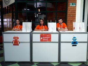 Marija Holjevac, Ivana Svalina i Borna Ungar, studenti Odsjeka za informacijske znanosti volontirali su na konferenciji te su u suradnji s ostalim volonterima pripremali poklone (goodie bags) za polaznike konferencije, sastavljali lego-robote te stekli još jedno iskustvo kao i nova poznanstva.