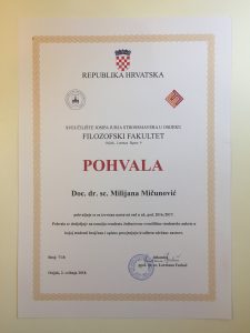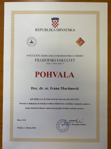 Dvije profesorice s Odsjeka za informacijske znanosti Filozofskog fakulteta, doc. dr. sc. Milijana Mičunović i doc. dr. sc. Ivana Martinović pohvaljene su za izvrstan nastavni rad u ak. god. 2016./2017. Pohvala se dodjeljuje na temelju rezultata Jedinstvene sveučilišne studentske ankete u kojoj studenti brojčano i opisno procjenjuju kvalitetu održane nastave.