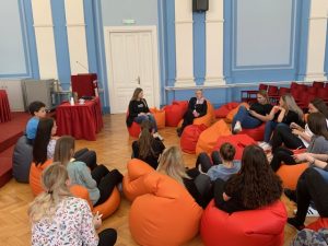 U četvrtak, 23. svibnja 2019. g. na Filozofskom fakultetu u Osijeku održan je susret s književnicom Silvijom Šesto u organizaciji studenata III. godine Informatologije pod mentorstvom doc.dr.sc. Ivane Martinović i asistentice Mirne Gilman Ranogajec. U prvom dijelu susreta sudjelovala su djeca iz dječjih vrtića Lane i Tani Nani. Silvija Šesto na interaktivan je način djeci čitala i predstavila svoju slikovnicu “Uhvati mi plavog medu” koja je nagrađena nagradom Grigor Vitez za tekst i ilustraciju. U drugom dijelu susreta s književnicom su se susreli studenti III. godine Informatologije. Studenti su osmislili i proveli intervju s književnicom. Razgovarali su o književniku kao profesiji, aktualnim pitanjima vezanim uz lektiru, nakladništvu knjige za djecu i mlade u Hrvatskoj itd.