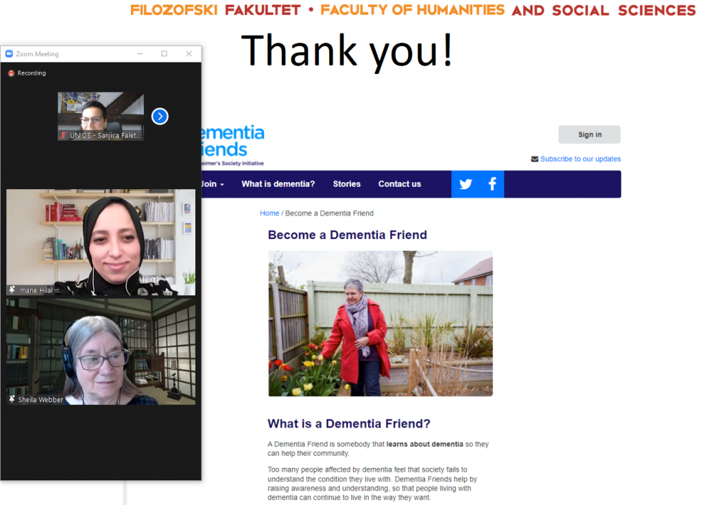 Prof. dr. sc. Sanjica Faletar Tanacković predstavila je 27. 4. 2022. institucionalni znanstvenoistraživački projekt Filozofskog fakulteta Osijek FFOS-002 “Izgradnja demenciji prijateljskih narodnih knjižnica: teorijske i praktične pretpostavke” na međunarodnoj konferenciji ASIS&T 24-Hour Global Conference. Konferencija se održala online, putem Zoom platforme, 26. i 27. travnja 2022., a tema skupa je bila “Networking, Sharing, and Learning: Challenges and Opportunities”.